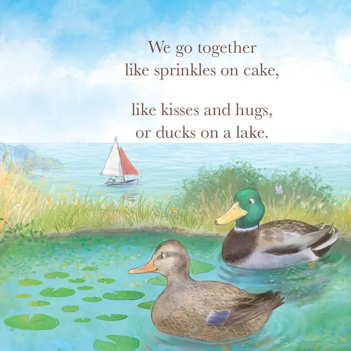 We go together like sprinkles on cake, like kisses and hugs, or ducks on a lake.