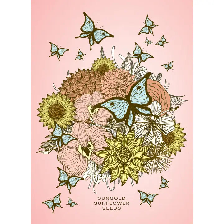 A smaller sunflower that is easy to grow and blooms brightly from mid-summer into fall. Densely petaled and bushy, these are ideal for cutting and butterfly gardens. Our eco-friendly packets are decorated with fluttering butterflies amidst a flowering bouquet. Filled with non-GMO, open-pollinated seeds.