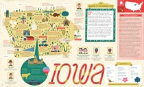 Explore every state of the USA from Alabama to Wyoming with these 51 charmingly illustrated infographic maps! Includes an expansive guide to the state flags and US presidents.